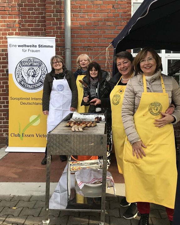 Unsere Clubschwestern kamen kaum mit dem Würstchengrillen hinterher - nach der Weinprobe blieben viele Besucher an unserem Stand stehen und ließen es sich schmecken. Die selbstgemachte Currysauce der Clubschwestern Beatrix und Alexandra kam ganz besonders gut an.